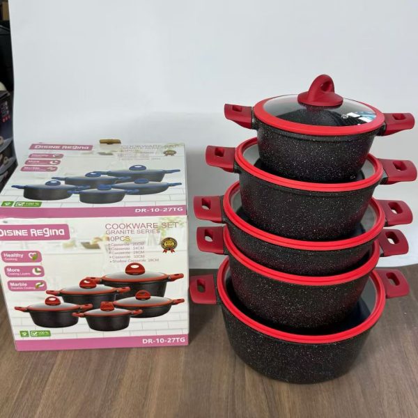 Disine Regina 10-Piece Premium Granite Series Cookware Set, Non-Stick Die-Cast Aluminum Pots with Tempered Glass Lids, Eco-Friendly & PFOA-Free Healthy Cooking Station, Model DR-10-27TG
